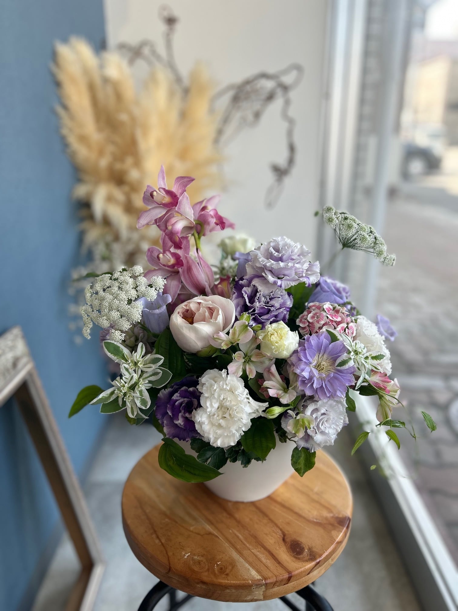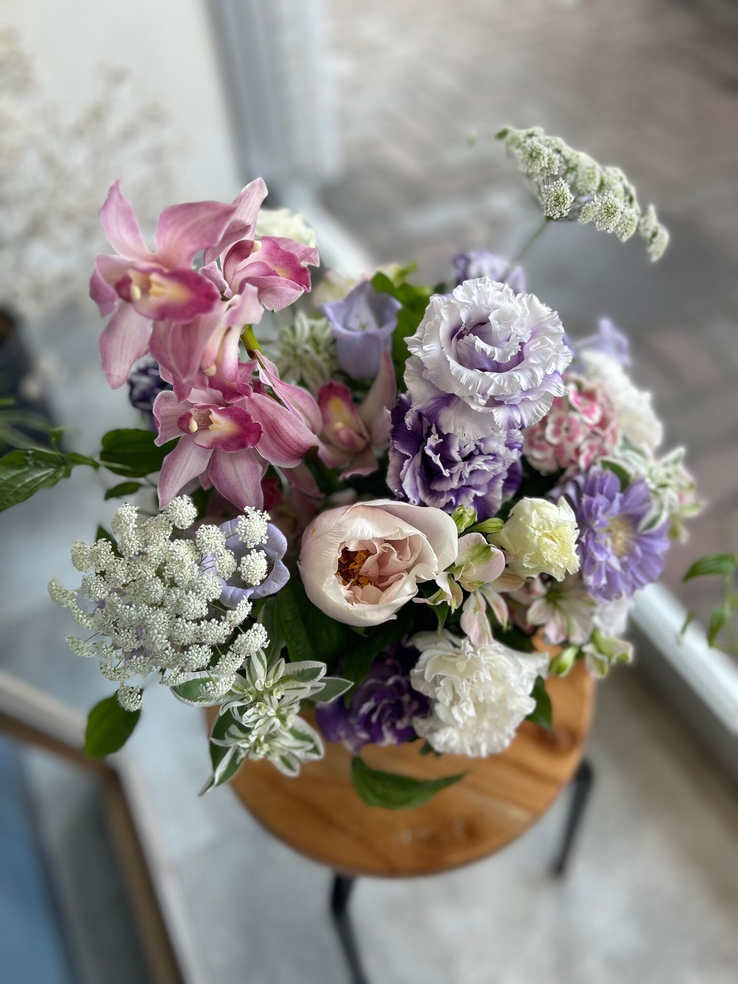 ⚫︎花材は季節により異なります。写真はイメージですので、その時のおすすめのお花で制作します。色合いや花材にご希望がある場合は備考にご記入ください。(季節や入荷状況によりご希望に添えない場合もございます)